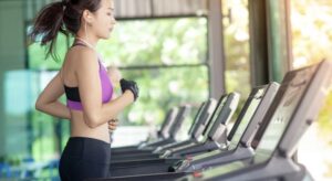 canva/ una chica corriendo en cinta en un gimnasio