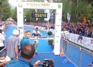 La prueba consistía en 3,8km de natación en el lago de Embrun seguida de 188km (+3800 metros de desnivel) de ciclismo para terminar 42,2 km (+1200m desnivel) de carrera a pie.