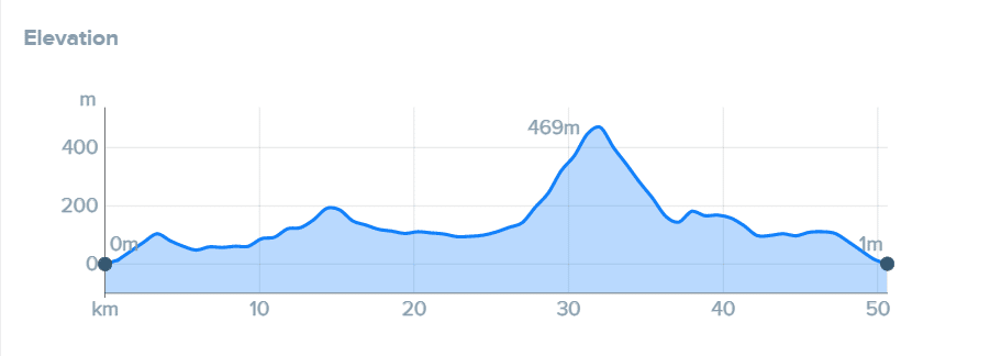 La subida tiene una longitud de 5.3 kilómetros y un ascenso de 322 metros con una pendiente media del 6.1%. El punto más alto está a 466 metros sobre el nivel del mar.