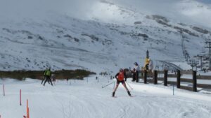 @Photo Sport Ciclismo González/ Imagen del tramo final de esquí de fondo en el Triatlón Blanco de Reinosa, sede del Campeonato de España de Triatlón de Invierno 2026.