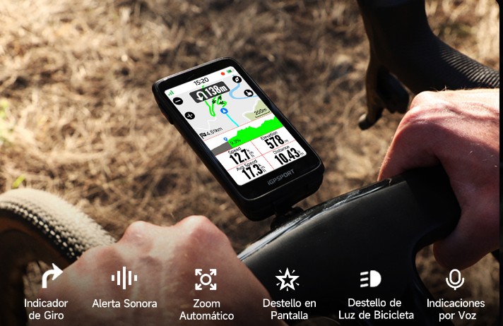 El iGPSPORT BiNavi Air es un ciclocomputador GPS para bicicleta que combina navegación con mapas, planificación avanzada de ascensos y una función de entrenamiento indoor llamada Virtual Ride, pensada para simular rutas reales en rodillo.